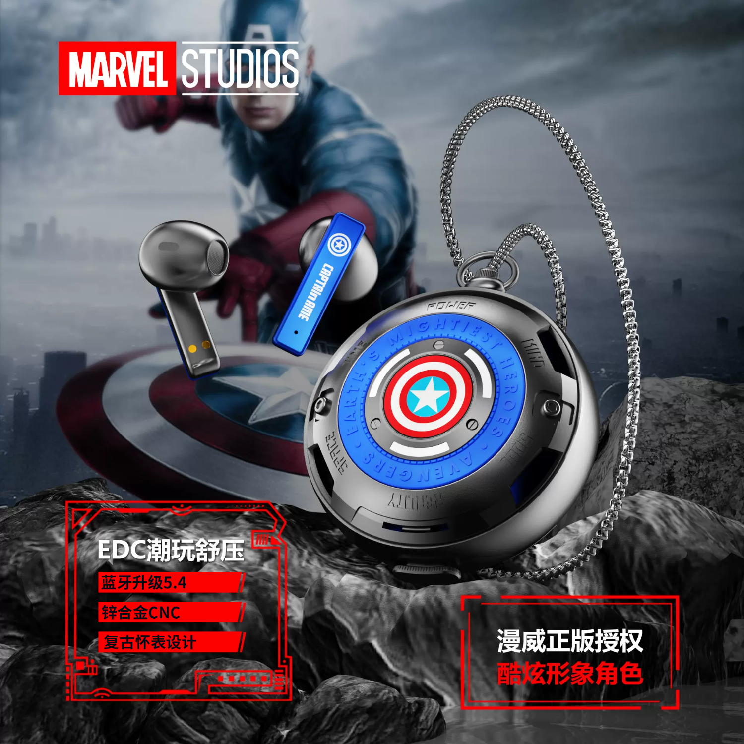 迪士尼 漫威无线蓝牙耳机 电竞手游真无线EDC 舒压设计低延迟蓝牙5.4 适用于华为苹果IQOO BF10 美队价格:189.00元!