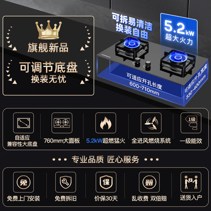 康佳(KONKA)燃气灶煤气灶双灶家用 5.2kW大火力 可调节底盘 63%热效率 易清洁铝炉头 JZY-KY01B(液化气)价格:599.00元!