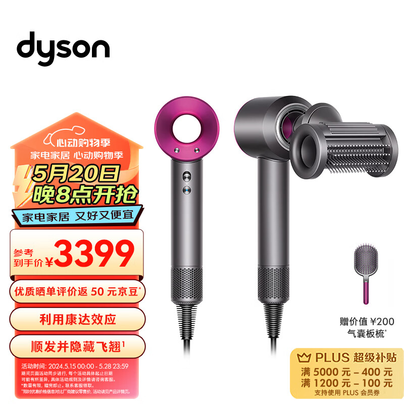 戴森(DYSON)HD15 新一代吹风机 Dyson Supersonic 电吹风 负离子 进口家用 礼物推荐 HD15 紫红色价格:3399.00元!