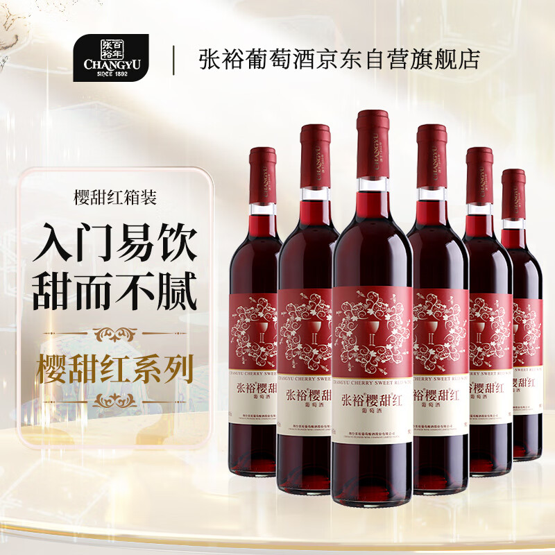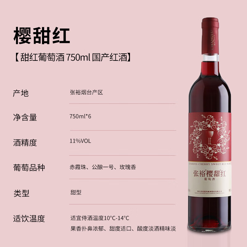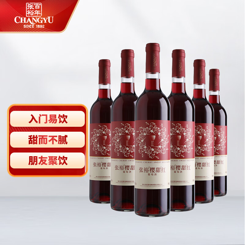 张裕 樱甜红甜红葡萄酒750ml*6瓶整箱装国产红酒价格:98.00元!