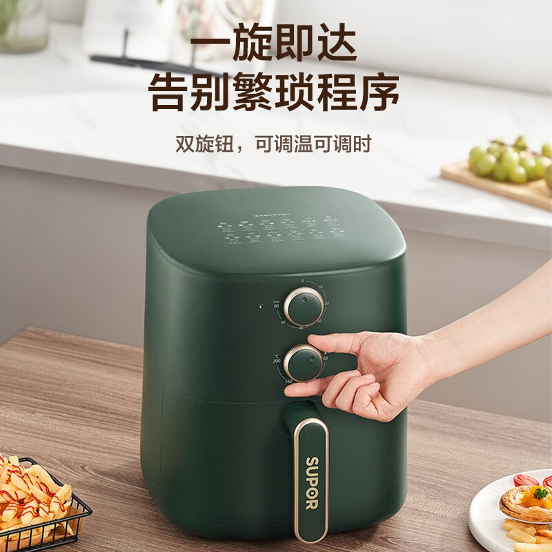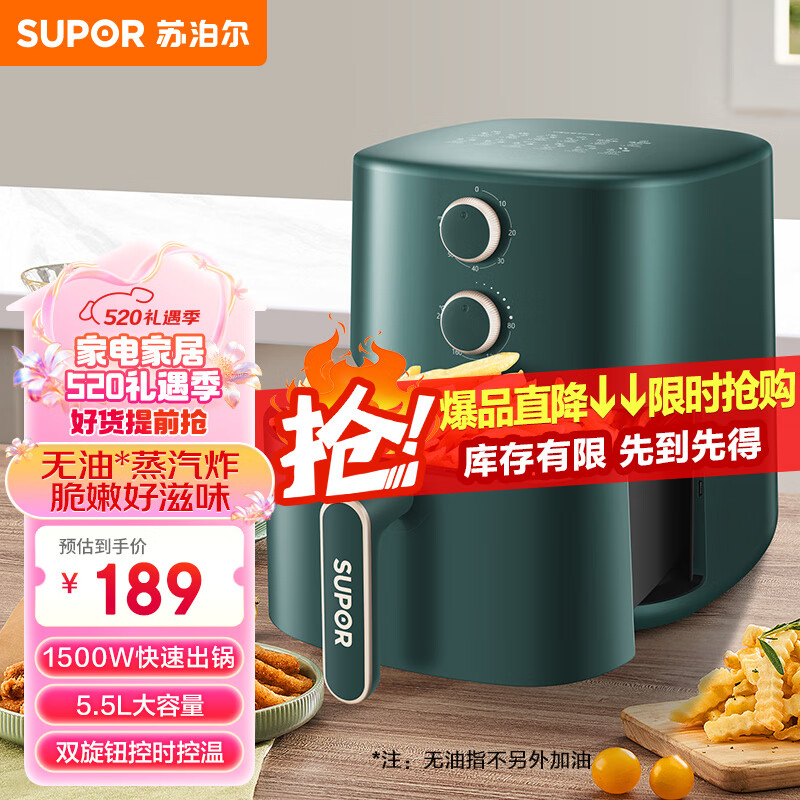 苏泊尔(SUPOR)空气炸锅家用大容量无油低脂煎炸锅精准控温大功率无油烟电炸锅双旋扭控温调时蒸汽嫩炸【5.5升】 5.5L价格:239.00元!