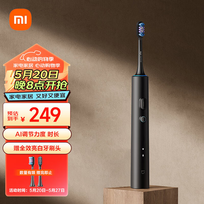 米家小米电动牙刷T501成人/学生 米家APP 30种定制方案 炫彩灯光 深灰色 520情人节礼物推荐价格:249.00元!
