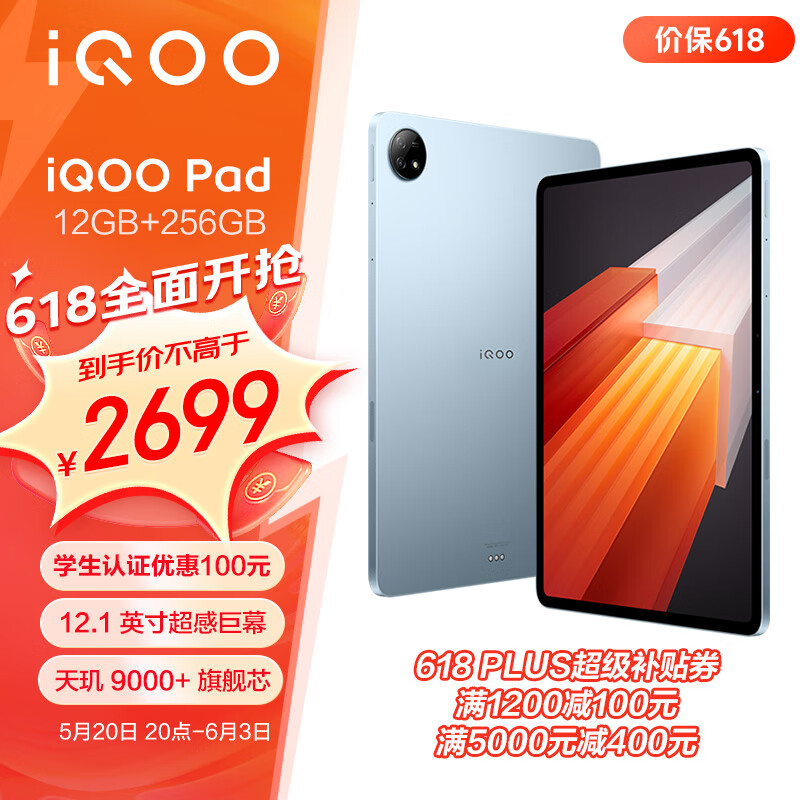 iQOO Pad 12.1英寸平板电脑(天玑9000+旗舰芯 12GB+256GB 144Hz超感巨幕 10000mAh电池)星海漫航价格:2699.00元!