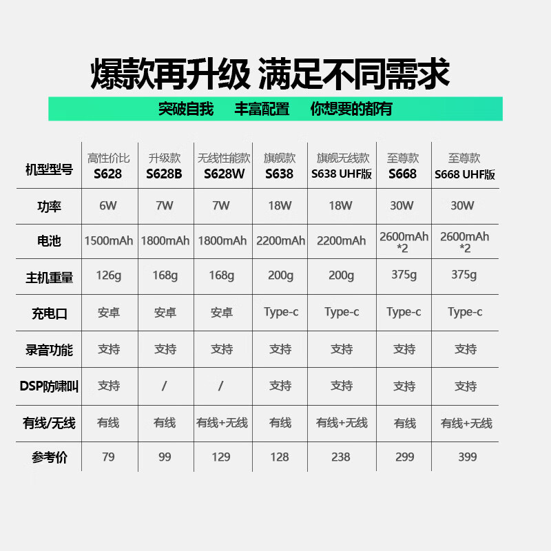 索爱S638UHF小蜜蜂扩音器无线教师专用18W功率智能防啸叫300S一键录音蓝牙音箱导游导购喇叭Type-c白价格:248.00元!