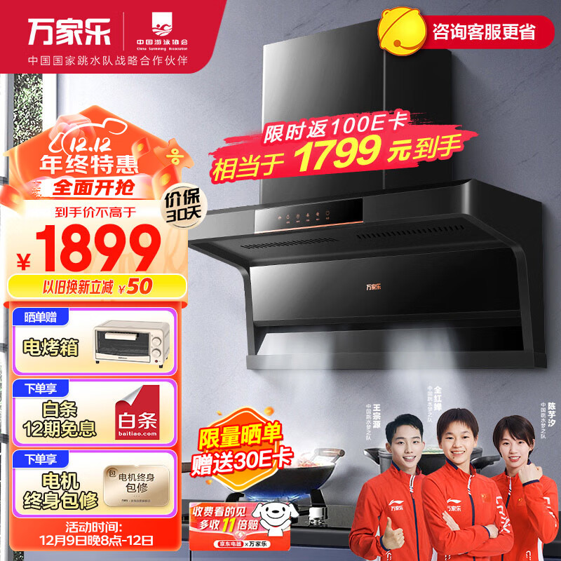 万家乐 抽油烟机 顶侧双吸油烟机7字型烟灶套装22m3/min大吸力自清洗挥手抽油烟机燃气灶具AK5+AY4天然气价格:2098.98元!