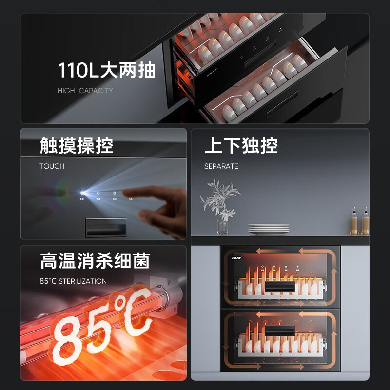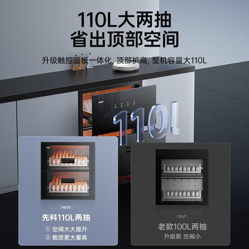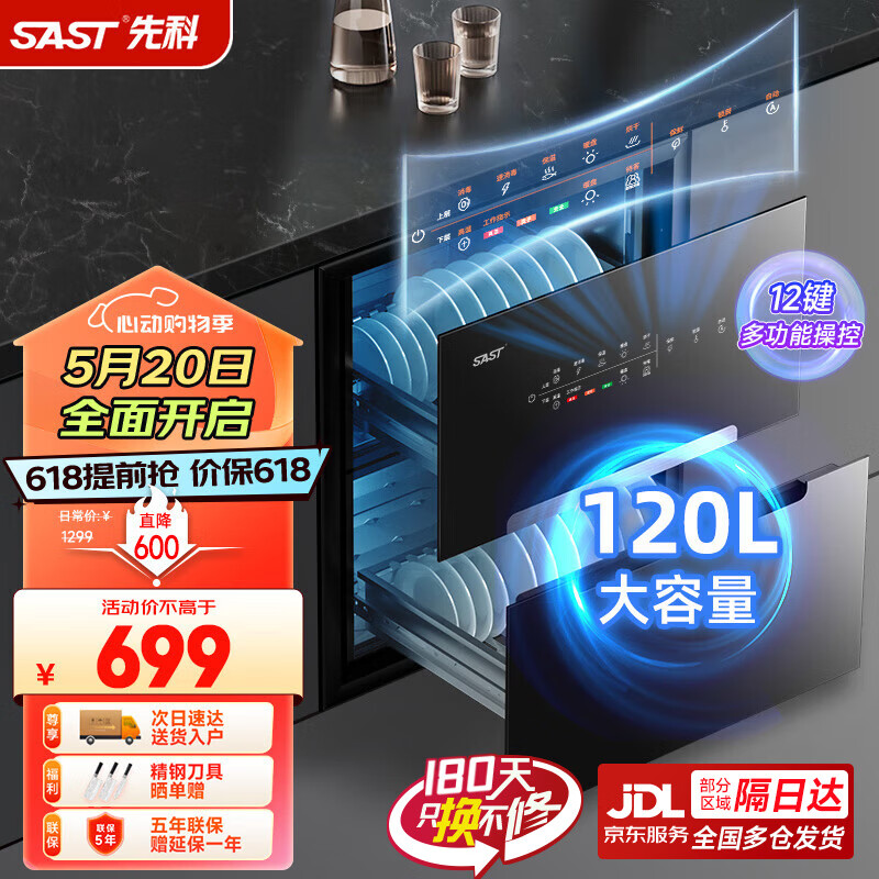 先科(SAST)消毒碗柜嵌入式家用厨房小型保洁柜三层双层大容量婴儿奶瓶餐具碗筷 120L /12键两层/高温消毒价格:1299.00元!