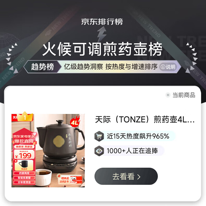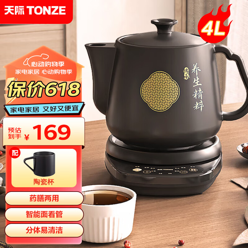 天际(TONZE)煎药壶4L分体式大容量熬药锅中药壶全自动陶瓷养生壶 熬药罐家用智能药膳煲 BJHD23A40FAW价格:169.00元!