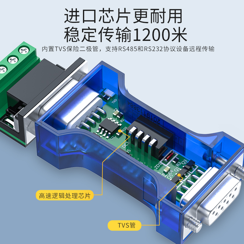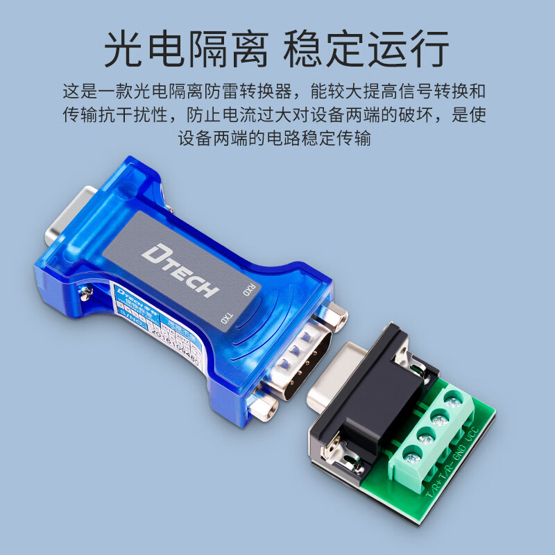 帝特 无源RS232转RS485转换器光电隔离型 带指示灯工业级9针串口双向通讯协议防雷转换器 DT-9015价格:118.00元!