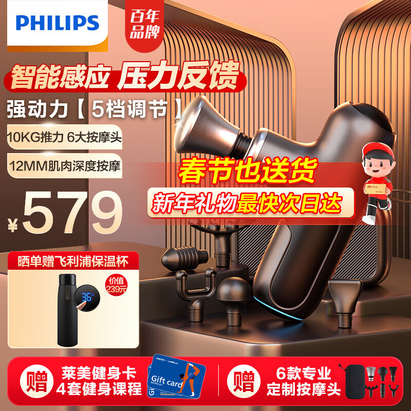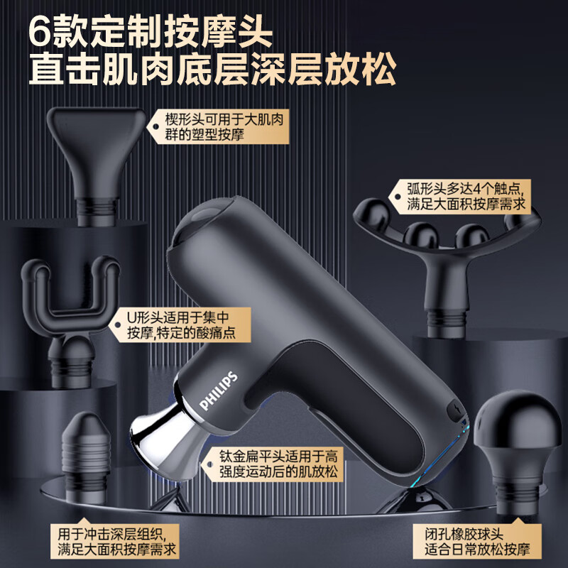 飞利浦(PHILIPS)筋膜枪肌肉按摩器全身筋膜枪按摩器专业级筋膜枪肌肉放松腿部按摩器经膜筋膜枪颈膜枪生日礼物 【6大按摩头】10kg推力+12mm深度按摩价格:679.00元!