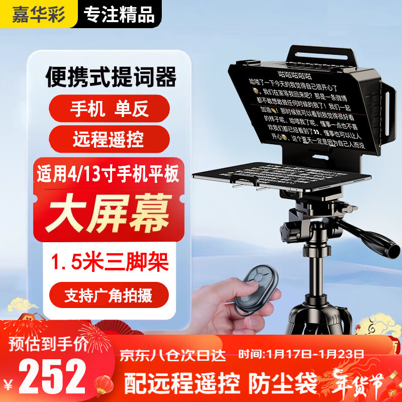 嘉华彩 直播提词器大屏幕手机平板单反相机微单便携大型提词机ipad视频录制提示字幕直播采访拍摄像头价格:252.00元!