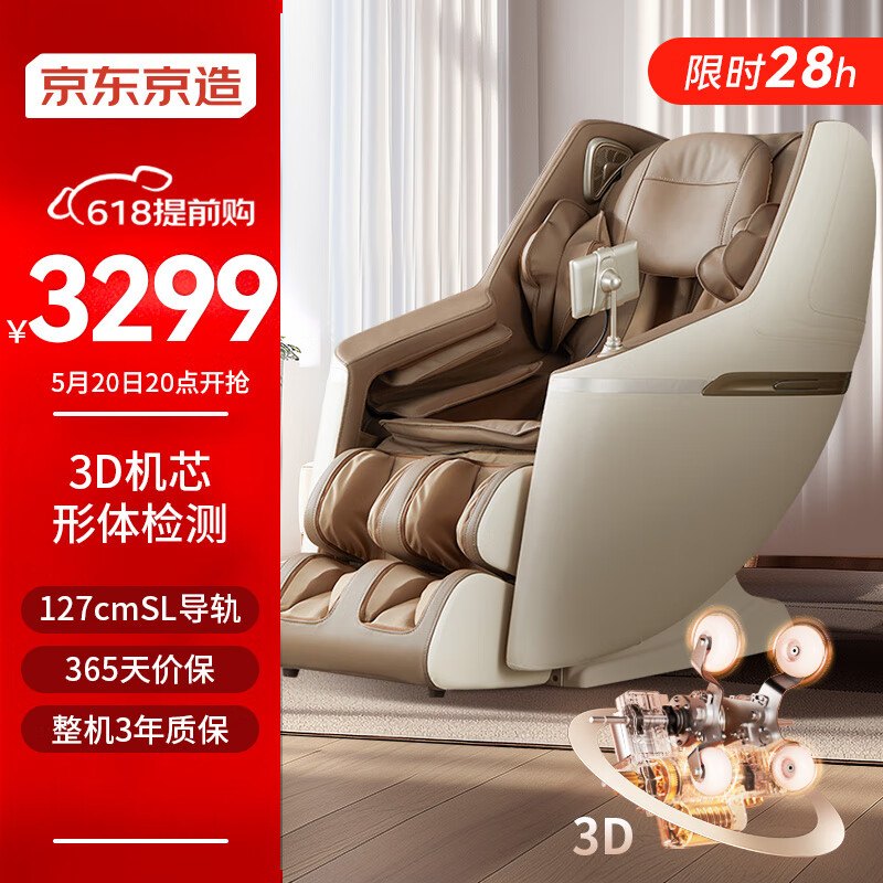 京东京造按摩椅家用全身太空舱H5s 智能电动沙发按摩机 3D机芯零重力腰部按摩 母亲节礼物实用送妈妈价格:3299.00元!