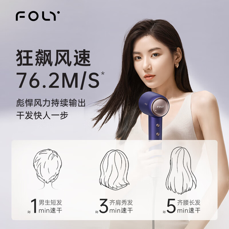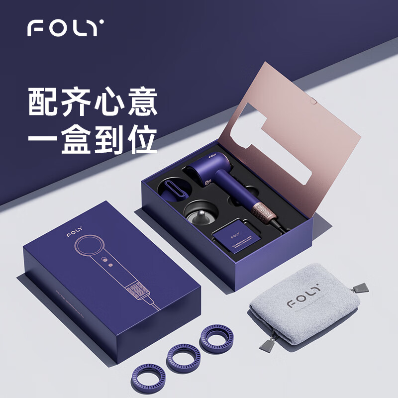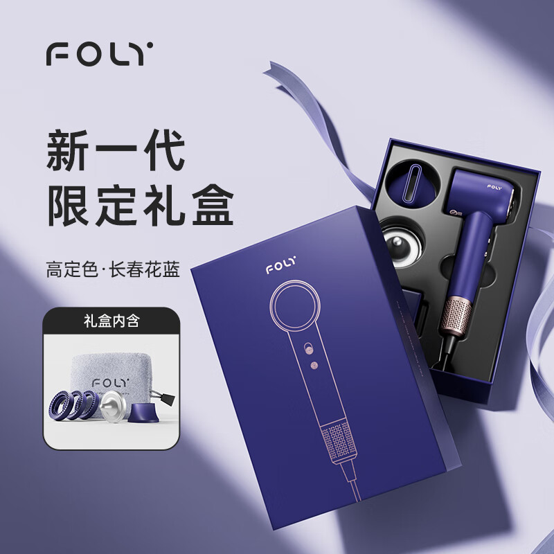 FOLY鱼子酱吹风机负离子高速电吹风大功率护发家用无叶吹风机速干低噪音便携式风筒PRO礼盒版 长春花兰价格:429.00元!