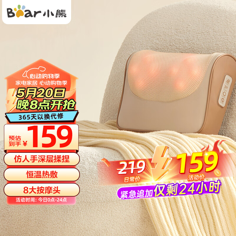 小熊(Bear)颈椎按摩器 腰部按摩仪按摩枕头颈部肩颈按摩靠垫 生日节日礼物送长辈AMQ-F24B5价格:219.00元!