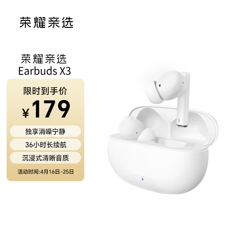 荣耀亲选Moecen Earbuds X3 釉白色 主动降噪真无线蓝牙耳机/36小时超长续航 苹果华为小米手机价格:179.00元!