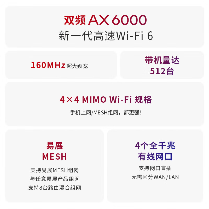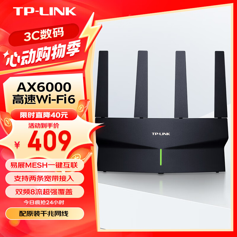 TP-link AX6000千兆无线路由器 WiFi6 5G双频高速网络 Mesh 游戏路由 智能家用穿墙 XDR6010易展版·玄鸟价格:449.00元!