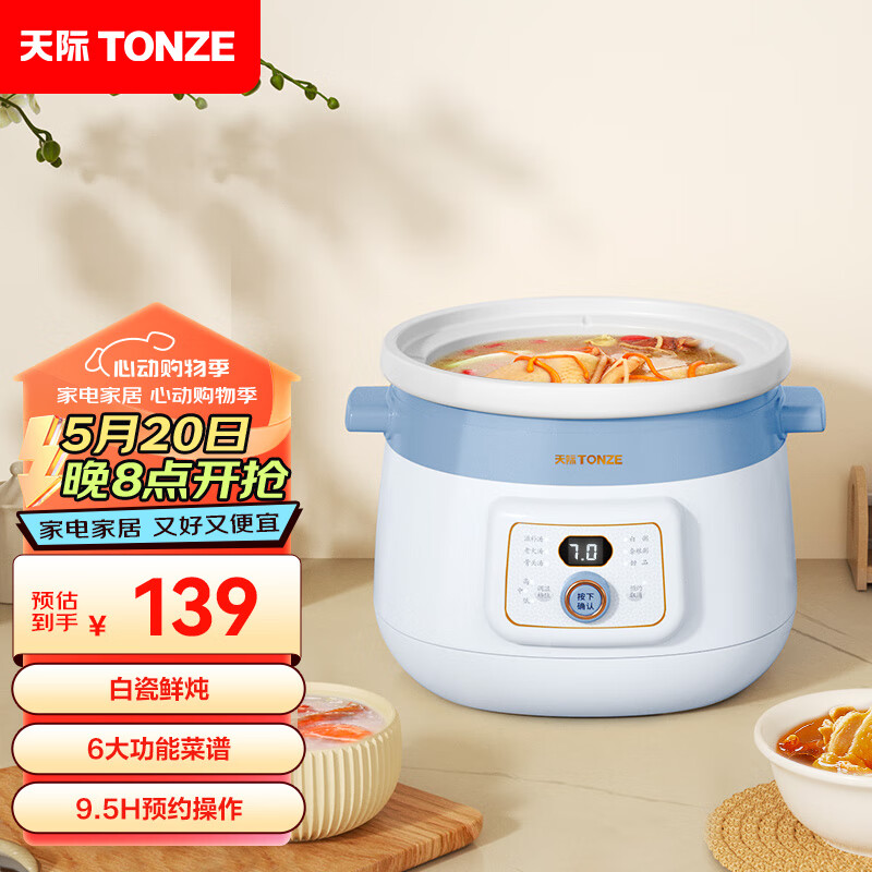 天际(TONZE)电炖锅 炖汤锅 家用陶瓷全自动电炖盅煮粥神器养生多功能炖锅 蓝色3升电炖锅DGDD23A30BMBW价格:139.00元!