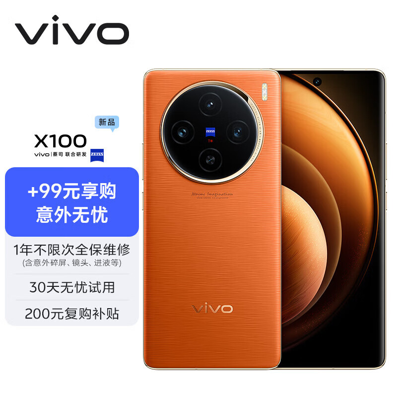 vivo X100 16GB+512GB 落日橙【意外无忧套装】蓝晶×天玑9300 5000mAh蓝海电池 蔡司超级长焦 5G 拍照 手机价格:4698.00元!