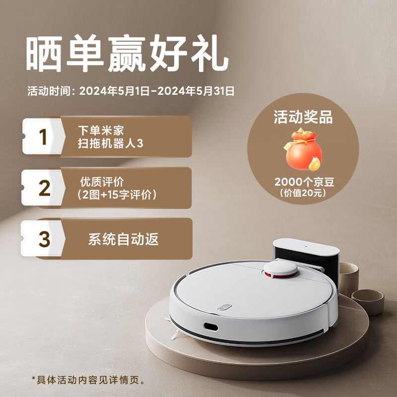 米家扫拖机器人 3 拖地机擦地机 LDS激光导航立体避障 小爱同学智能互联 扫拖一体机价格:1299.00元!