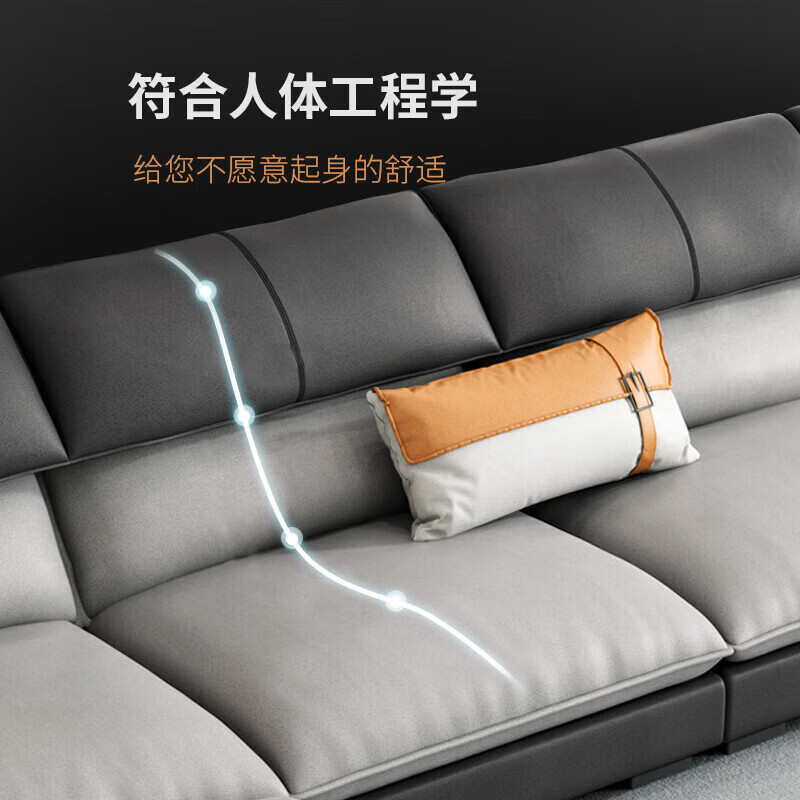 5、大家看图说话吧,科技布这种材质还是比较舒服的,然后沙发坐着腰部有明显的支撑感,长久坐着腰不会觉得酸。。