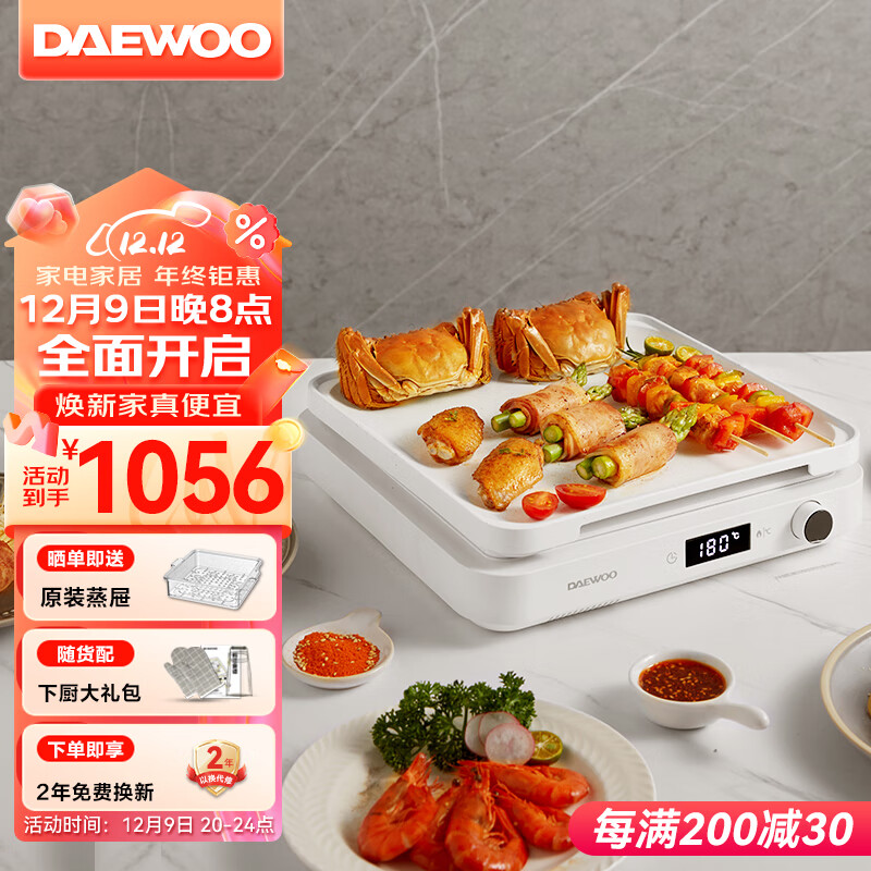 大宇(DAEWOO)多功能锅网红料理锅 家用电火锅电热炒锅电烧烤炉电煮锅不粘锅 小方糖C02白色价格:1198.00元!