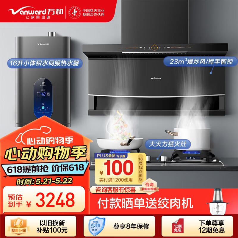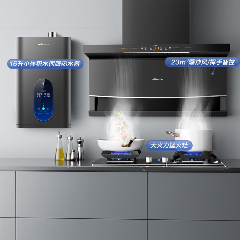 万和(Vanward)烟灶热三件套 顶侧双吸7字型大吸力油烟机燃气灶具热水器套装WL856+C5L90S+ME5D16(天然气)价格:3548.00元!