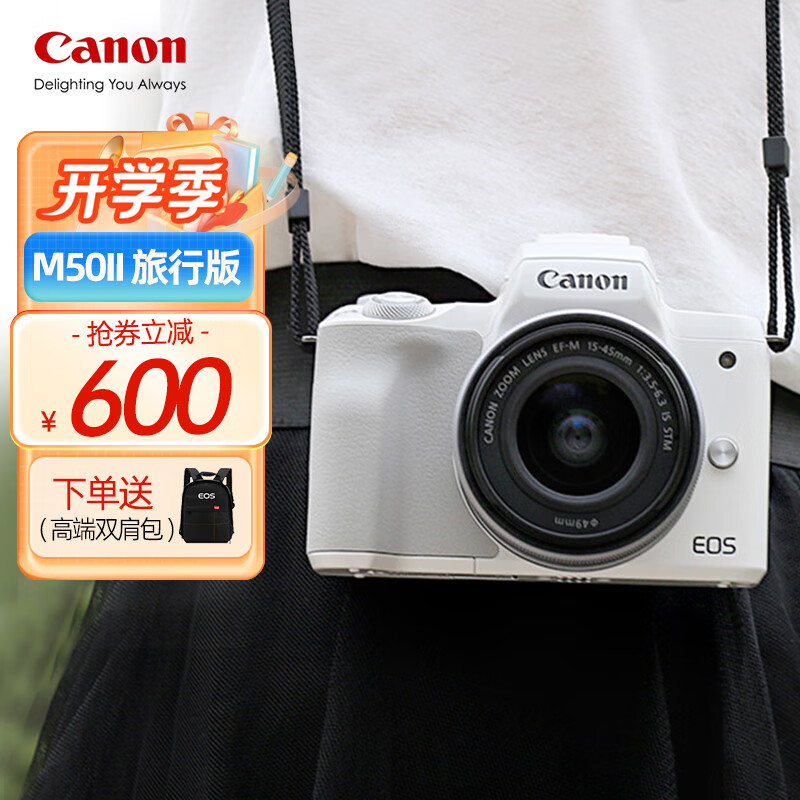 佳能(Canon) EOSm50二代入门级微单高清旅游数码学生款2代美颜vlog自拍照相机 M50 II(EF-M15-45)白旅行版价格:8088.00元!