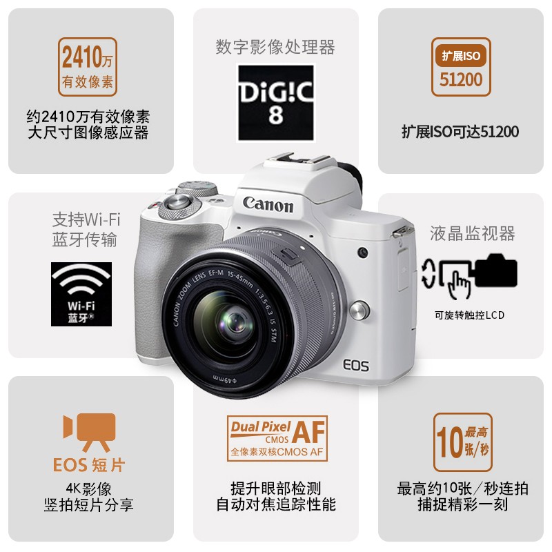 佳能(Canon)EOS M50 Mark II配置参数: