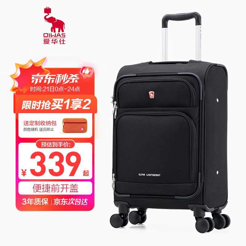 爱华仕牛津布行李箱可登机拉杆箱男出差商务旅行箱女前开盖帆布箱20英寸价格:389.00元!