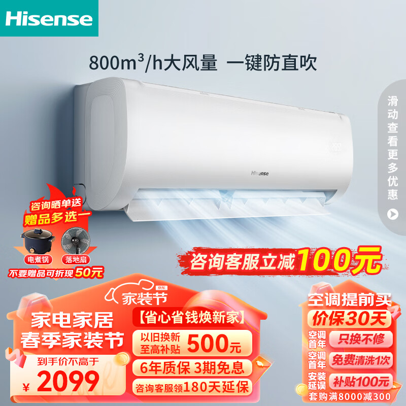 海信(Hisense)1.5匹空调挂机 新一级能效 变频大风量速冷暖APP智能防直吹 卧室壁挂式 KFR-35GW/E370-X1以旧换新价格:2097.00元!