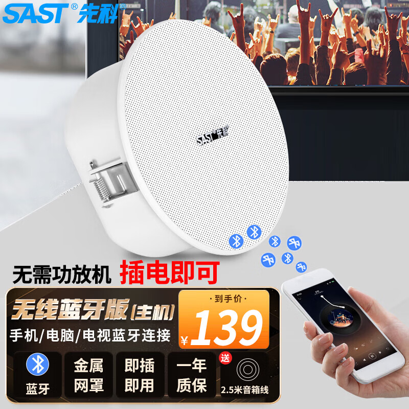 先科(SAST)G3 无线蓝牙吸顶音响 吊顶天花板公共广播喇叭音箱(主机)价格:139.00元!