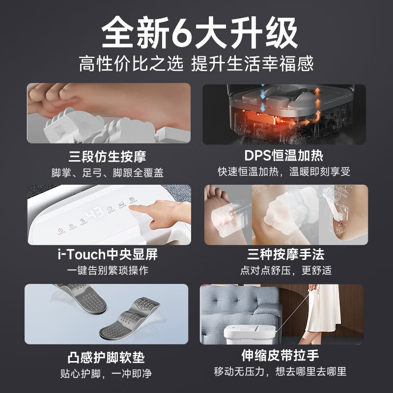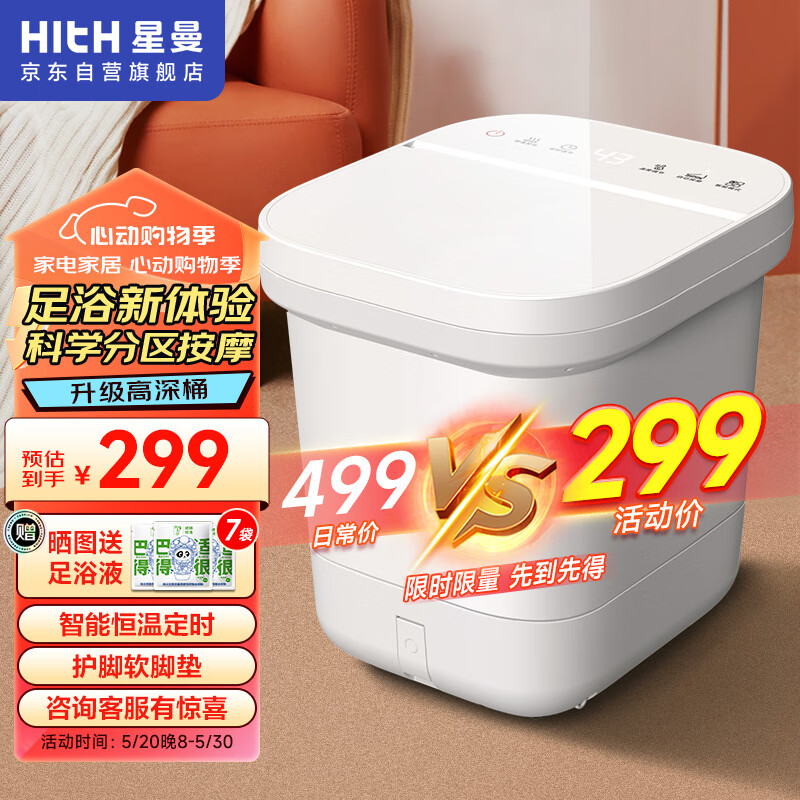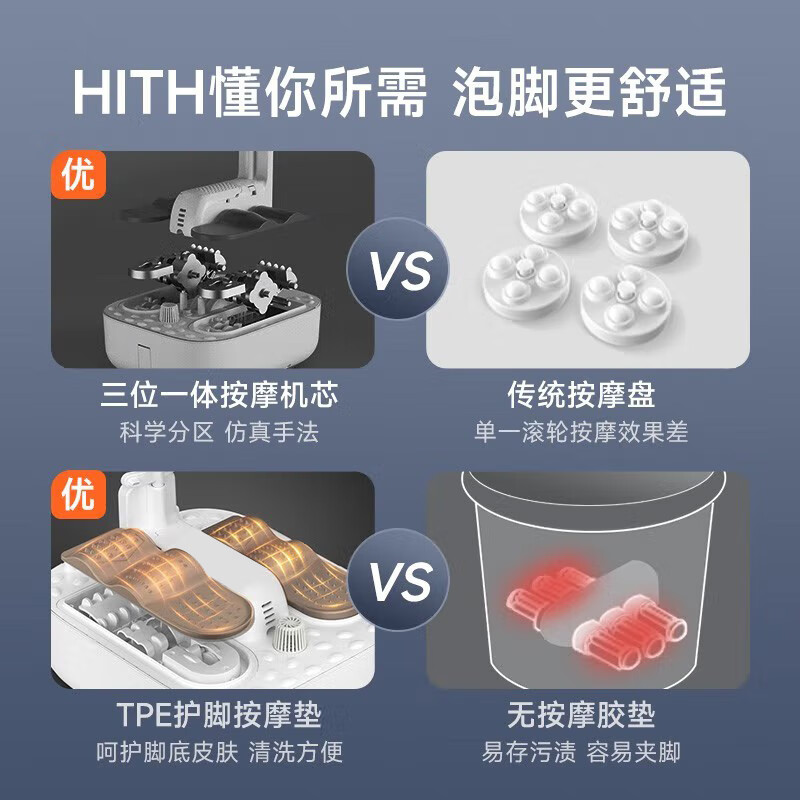 HITH泡脚桶电动按摩足浴盆全自动加热泡脚盆智能按摩恒温高深桶足浴桶家用足疗盆节日生日礼物ZMZ-V1价格:449.00元!