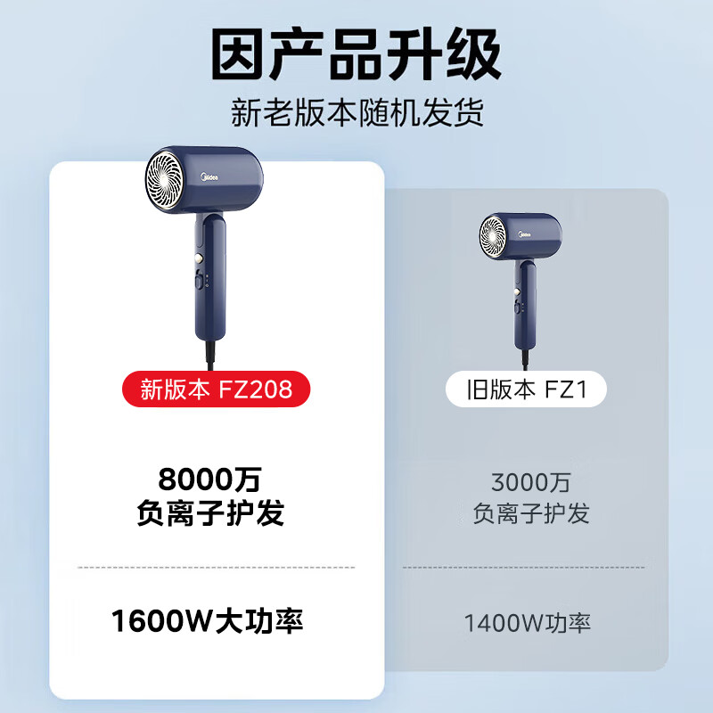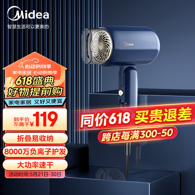 美的(Midea)八千万负离子电吹风 大功率 家用速干柔顺护发吹风筒 可折叠电吹风机 节日礼物 FZ208-深海蓝价格:119.00元!