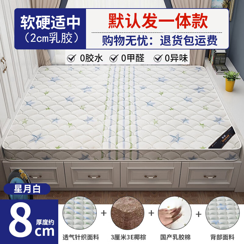 新岚 椰棕床垫星星一体加乳胶榻榻米垫单双人垫硬床垫 135*190*8cm价格:320.00元!