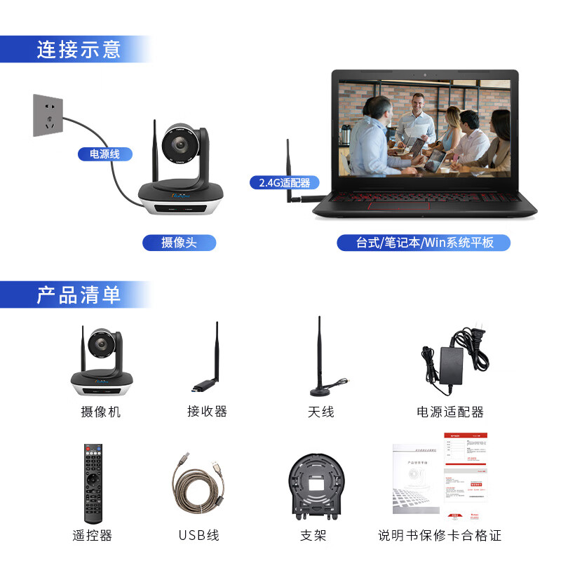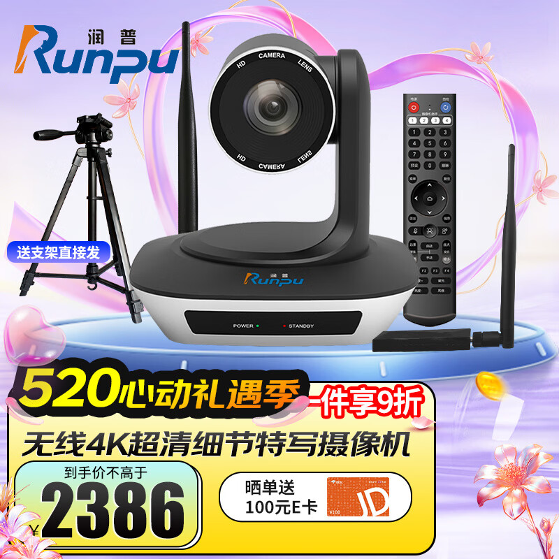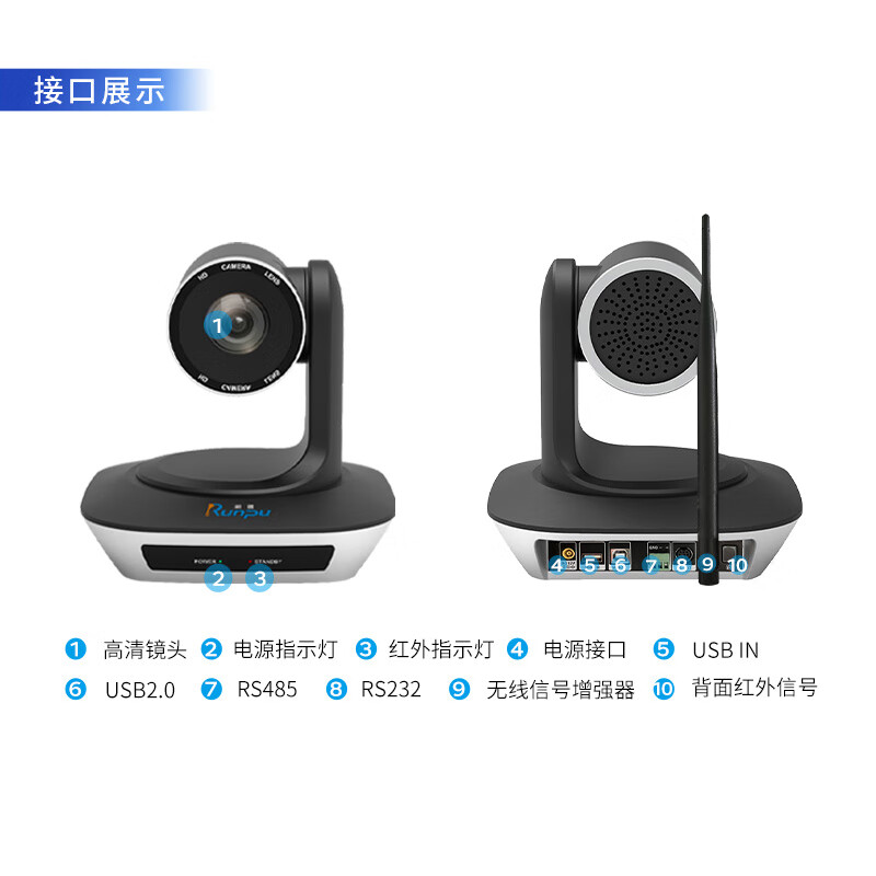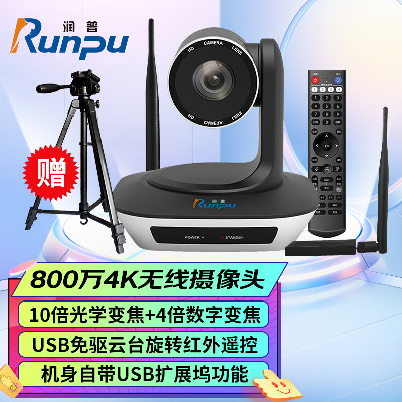 润普Runpu 视频会议摄像头无线摄像机4K超清800万像素10倍光学变焦遥控云台远程视频直播RP-V10-1080W价格:2650.00元!