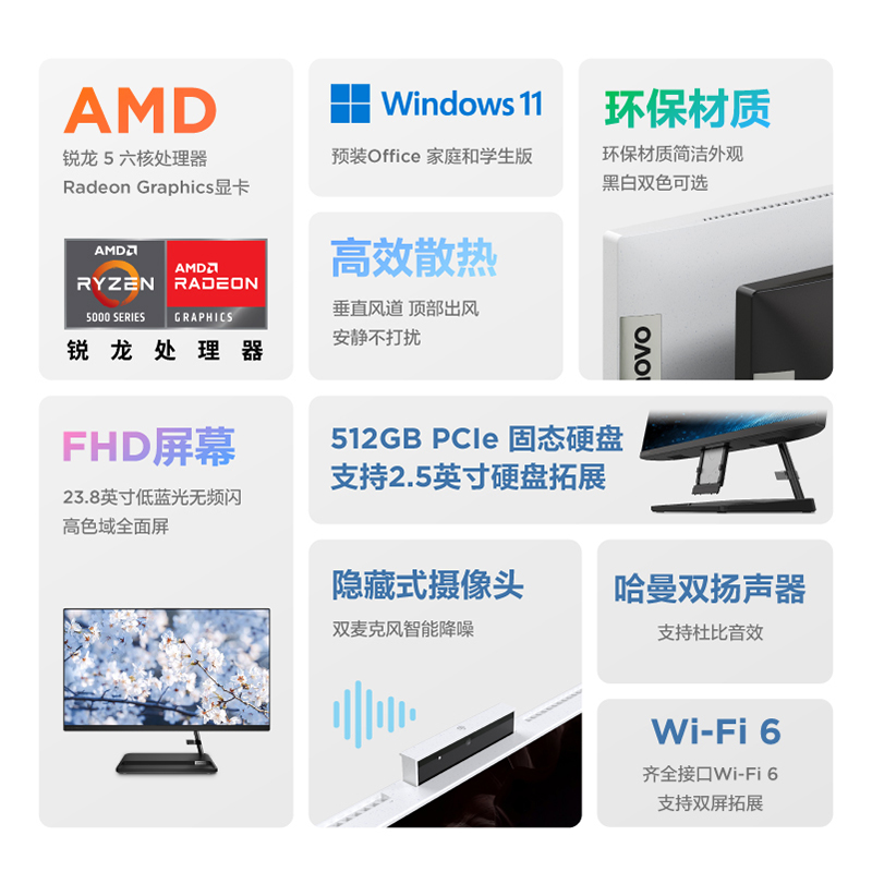 联想(Lenovo)小新一体台式机电脑23.8英寸(R5 5500U 8G 512G SSD 摄像头 win11 )黑价格:3099.00元!