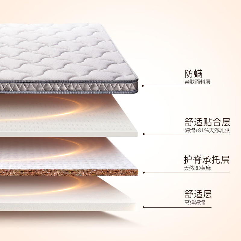 富安娜床垫 偏硬护脊 天然乳胶床垫防螨抗菌3D黄麻榻榻米薄床垫 1.2*2米价格:1799.00元!