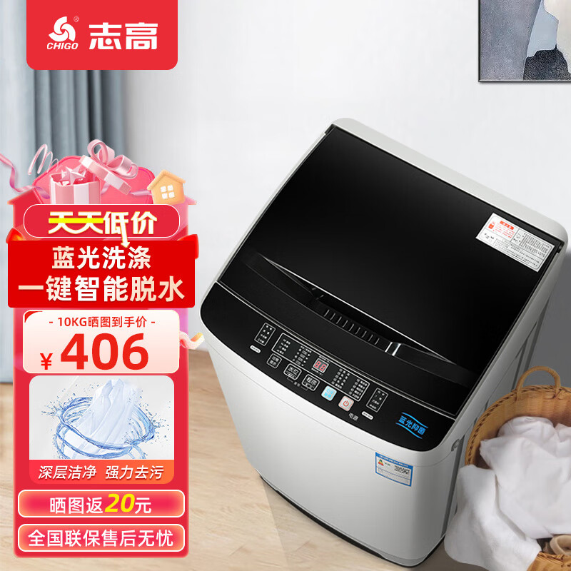 志高(CHIGO)10KG大容量全自动波轮洗衣机家用宿舍租房免清洗智能洗脱一体全自动 XQB100-8189宝石灰价格:476.00元!