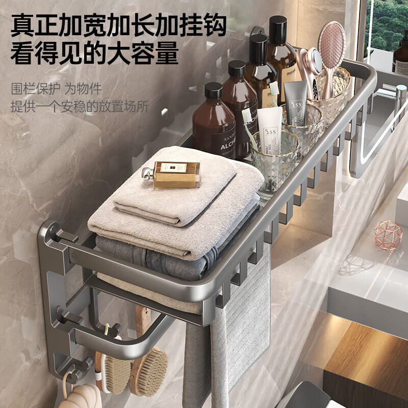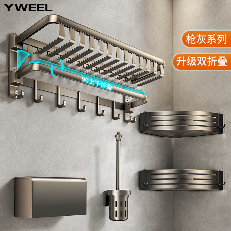 YWEEL卫生间置物架枪灰色毛巾架免打孔浴室太空铝浴巾架卫浴挂件套装价格:183.24元!