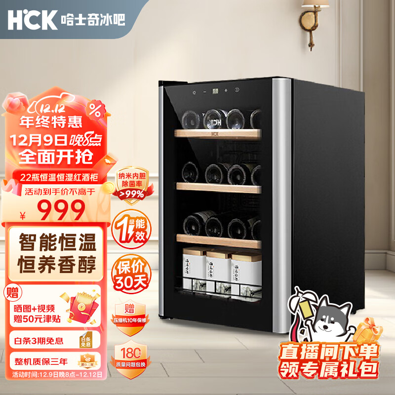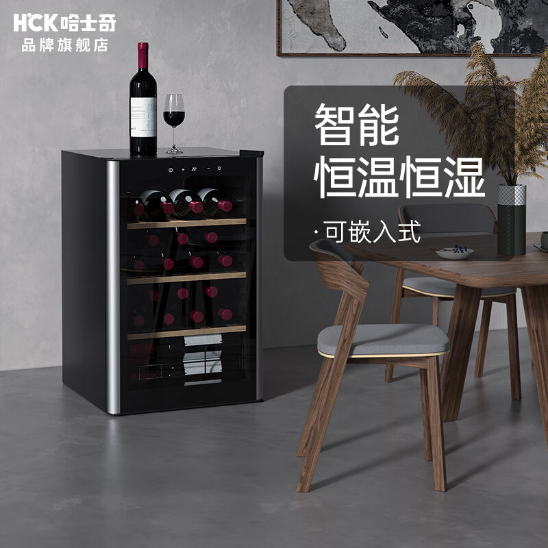哈士奇红酒柜恒温恒湿单门家用小型迷你复古酒柜22瓶装茶叶储藏柜嵌入式酒柜SC-70E价格:999.00元!