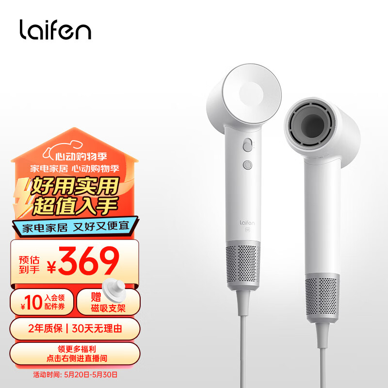 徕芬Laifen SE 家用吹风机 大功率速干电吹风 莱芬负离子大风力不伤发风筒 赠男士女士520情人节礼物 SE白色价格:369.00元!