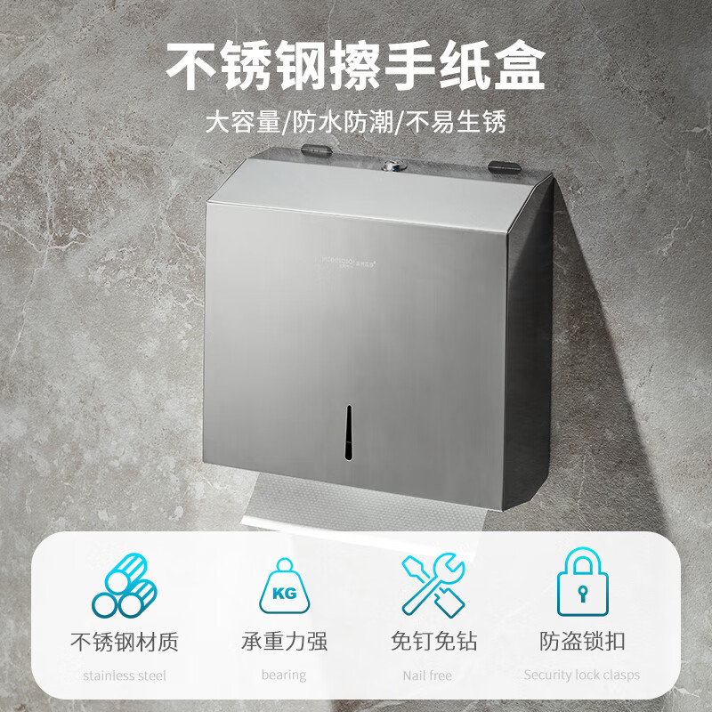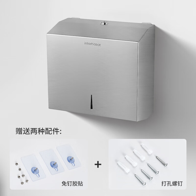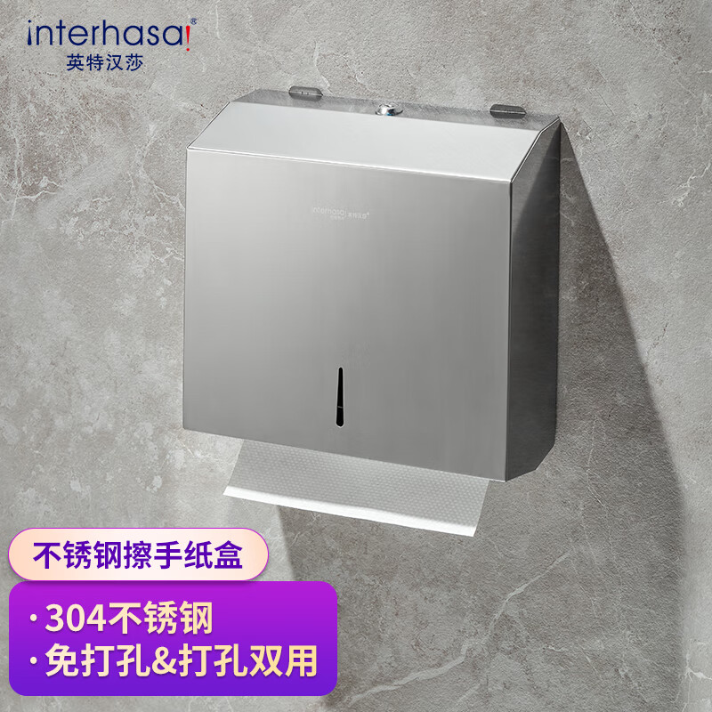 英特汉莎(interhasa!)E218壁挂式擦手纸盒304不锈钢卫生间纸巾盒厕所干手抽纸盒免打孔价格:129.00元!