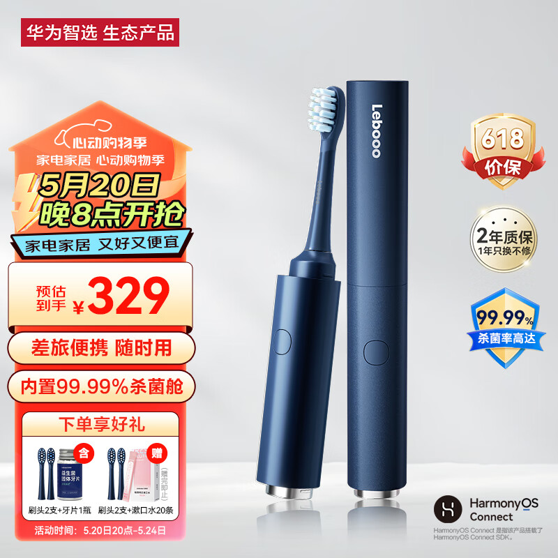 华为智选力博得智能牙刷3 送男友送女友礼物 差旅便携电动牙刷口红牙刷 消毒杀菌Pocket?尊享款海湖青价格:329.00元!