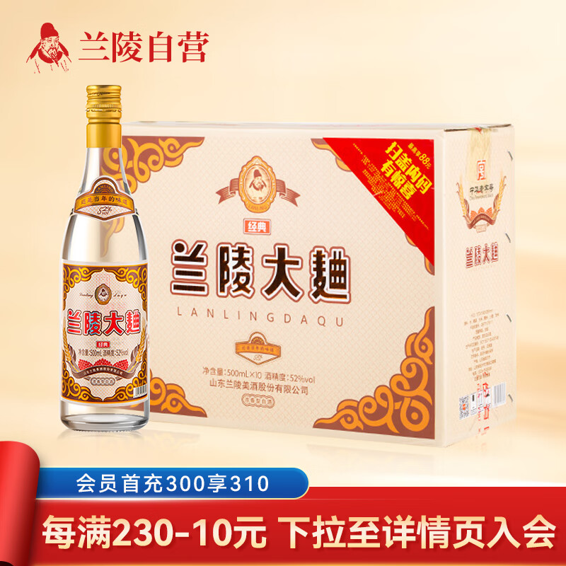 兰陵大曲酒 52度 浓香优级白酒 500ml*10瓶整箱装 山东名酒 送礼价格:230.00元!