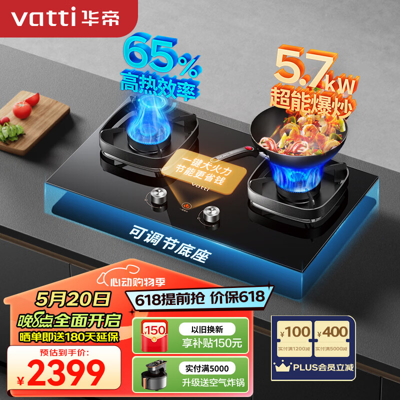 华帝(VATTI)【爆炒灶】燃气灶家用台式嵌入式5.7kW大火力高热效易打理龙卷火灶台灶具JZT-i10506H(天然气)价格:2599.00元!