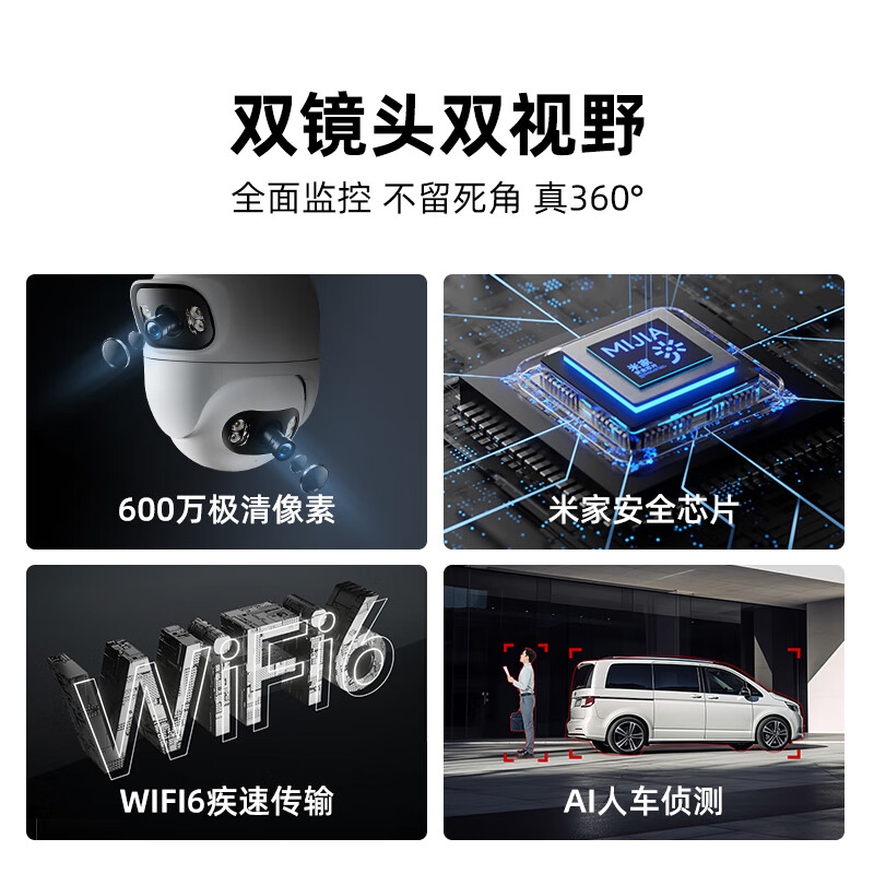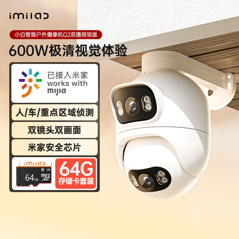 小白 Q2双摄版已接入米家摄像头室外防水监控器360度带夜视600W像素wifi6网络手机远程AI人车侦测价格:329.00元!