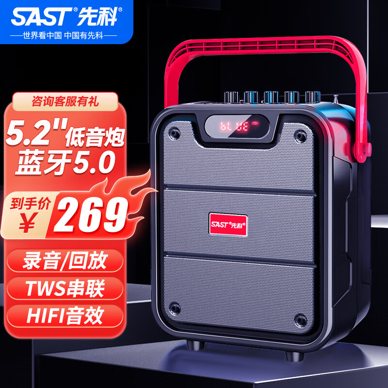 先科(SAST)ST-1506 6.5英寸户外无线蓝牙音箱小型广场舞手提便携式移动家用K歌音响不带话筒价格:269.00元!