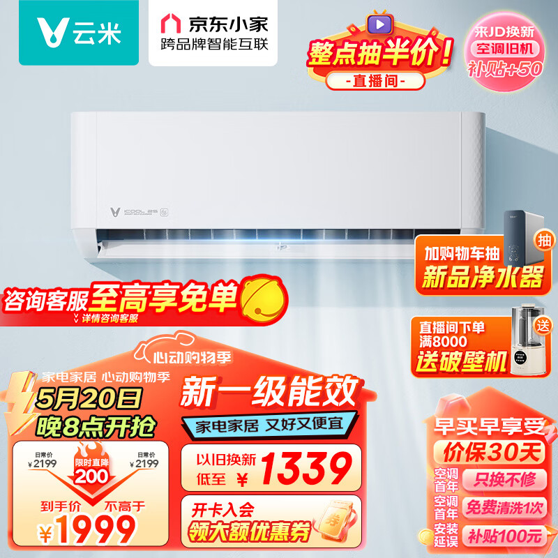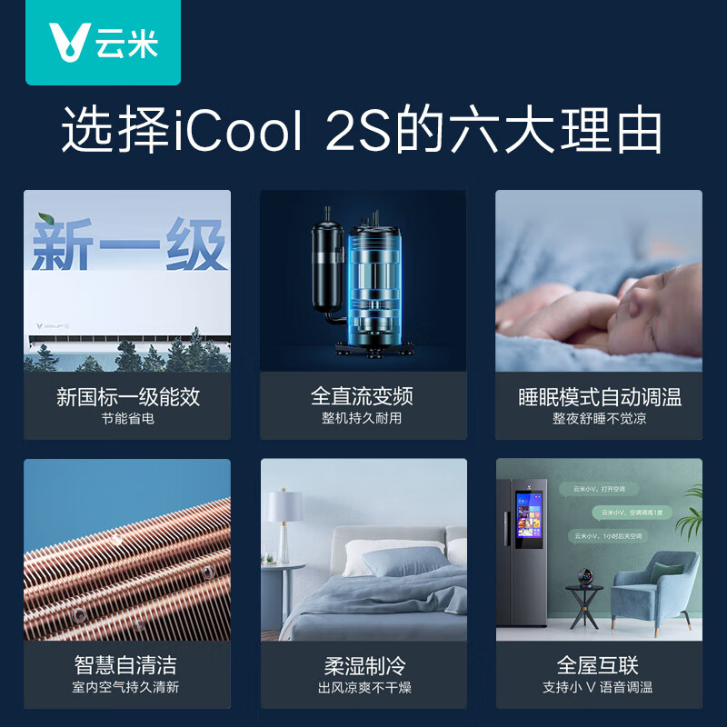云米(VIOMI)新一级 iCool 2S 爱酷 智能家电 变频冷暖 以旧换新 1.5匹壁挂式空调挂机 KFRd-35GW/Y4PP2-A1价格:1999.00元!