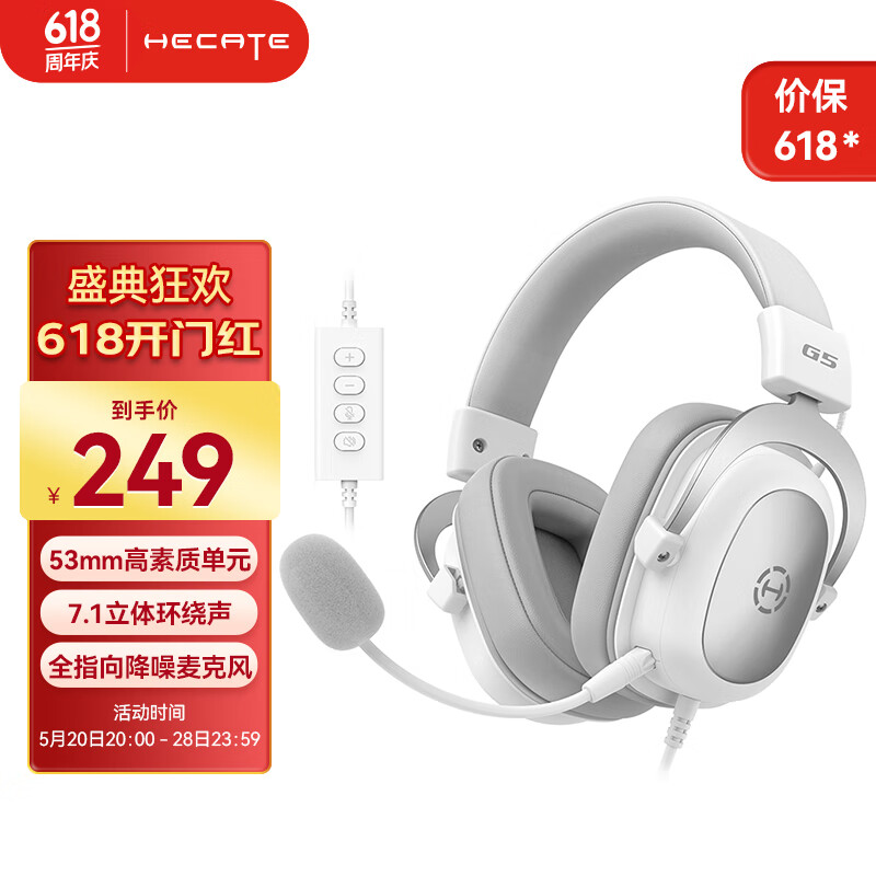 漫步者(EDIFIER)HECATE G5专业赛事级头戴式电竞游戏耳机 USB7.1声道有线电脑吃鸡fps耳麦 降噪麦克风 银白色价格:279.00元!
