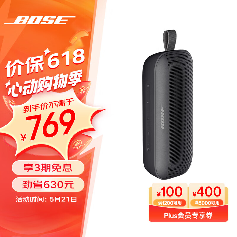 Bose Soundlink Flex 蓝牙音响-黑色 户外防水便携式露营音箱/扬声器价格:799.00元!