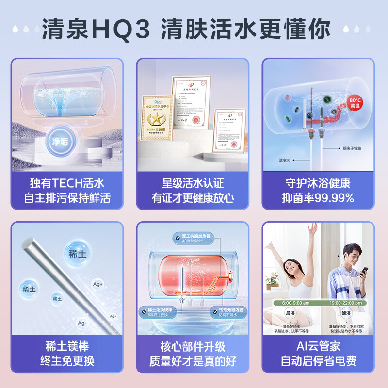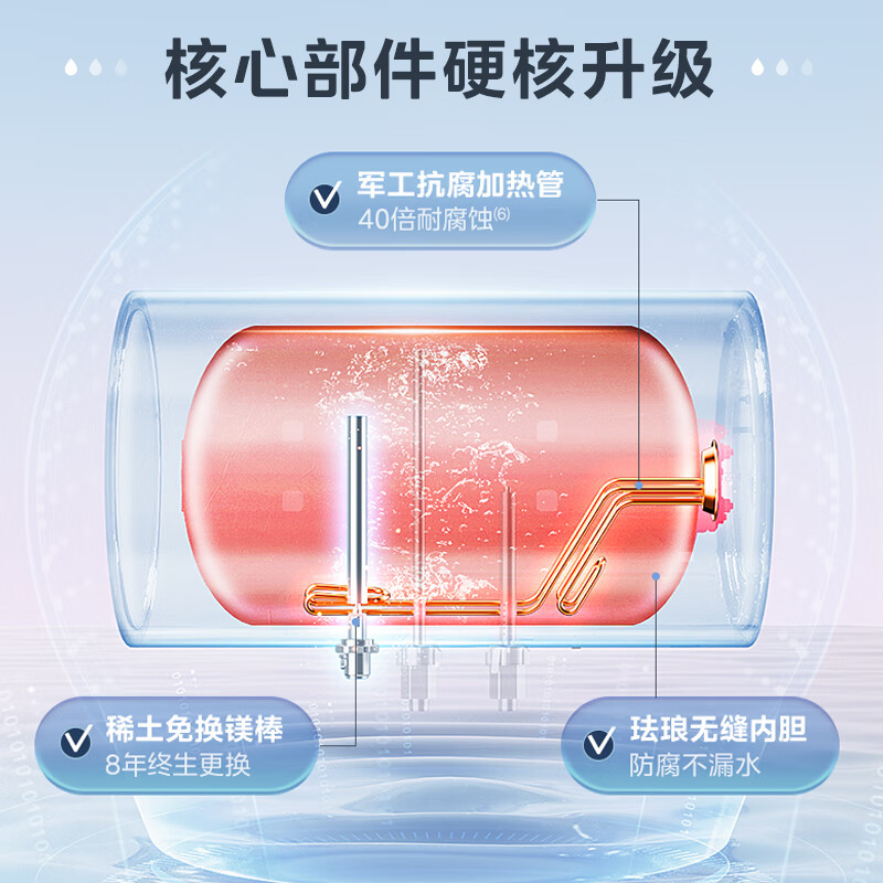 特征特质:珐琅无缝内胆,净水母婴洗,镁棒免更换